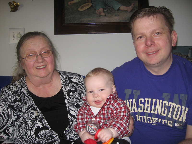 Erik had to go to a work meeting today, so Mom and Finn stayed home alone for the morning…then we got some visitors. Janet C. and Kevin, Nicole and Esme all came over for a visit. These were our first home visitors. We’re thankful for the gift basket we received from Kevin, Nicole and Esme and the nice visits.